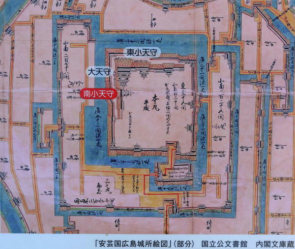 毛利元就は、高田郡の吉田郡山城を本拠に中国制覇を成し遂げたるが、安芸の国府があり政治・経済・交通の要であった佐東地域(旧佐東郡は江戸時代に沼田郡と改称)の重要性を認識していたと云われている。 天正17年、毛利輝元は山間部の吉田郡山から太田川下流の広島湾頭に位置する五箇庄の地に居城を移すべく築城を開始する。新城は豊臣秀吉が築城した京都聚楽第の縄張りをモデルにしたとも云われ、天正19年には輝元が新城広島城へと移り、慶長4年に全ての工事が完了した。 しかし、慶長5年の関ヶ原の役で西軍の総大将であった輝元は、周防・長門の2ヶ国に減封されて長門萩城へ移る。替わって、関ヶ原の戦功により福島正則が、尾張清洲から49万石で入封した。 福島正則は、広島城を拡張し、更に三原・三次・亀居・神辺・鞆・東城の6支城を築き領内経営に乗り出すが、元和3年に広島で大洪水があり広島城も多大な被害を被った。 元和5年、福島正則は幕府の許可が下りないままに石垣等の修理を行うが、これを幕府から咎められ改易となる。正則は、幕府より信濃高井の地に捨て扶持を与えられ居館を構えて移り、彼の地にて没した。 福島氏改易により所領は二分され、安芸一国と備後8郡42万石を浅野長晟に与えられ、元和5年に福島正則の去った広島城に紀伊和歌山から入り、備後東部6郡と備中2郡合わせて10万石に加増された水野勝成が大和郡山から福山城へと入った。広島に入った浅野氏は、長晟以後代々広島から動くことなく12代長勲の時に明治を迎えている。 |