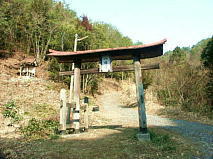 山頂部の曲輪は、全くの未整備状態で、城の遺構は非常に確認しづらい。当然のことながら、山頂からの眺望は全く望めない。かつての居館跡とも思える曲輪は長尾神社の境内となっていて、この神社の山門を潜ってすぐ左手の山道(非常に薄い道)が登城道。 |