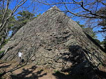日出城は、別府湾に突き出した台地の先端部を利用して築かれている。その縄張りは、南北に長い長方形をした本丸を海を背にして配置し、本丸の海に面した南側を除く三方を水堀と空堀で囲み、北と南の二箇所に虎口を開いている。 本丸の三方を取り囲むように二の丸を配し、その外側には堀が設けられてている。二の丸は北に外大手門、東に中ノ門を開き、塁上には平櫓が二基建てられていた。三の丸は、二の丸東側の海沿いに設けられ東に浜口門、西に三の丸口門が開かれいた。二の丸・三の丸の北側に城下町が形成され、北に藤原口門と西に八日市門が開かれていた。 現在は、本丸一帯が日出小学校の敷地となっていて、本丸を囲繞していた水堀と空堀が完存し、小学校南側(海に面して)には腰曲輪一帯が小公園となっていて三層の天守が建てられていた天守台や二層の望海楼(久頓櫓)台をはじめとする本丸の高石垣が見事だ。 二の丸は概ね住宅地と日出中学校敷地となり、三の丸は日出幼稚園と住宅地となっている。日出町役場北側の道路が日出城外郭の北端ラインと重なっていて、役場の北東部にある光蓮寺境内付近が大神氏が築いた日出城のあった場所だ。 本丸内は小学校敷地の為、民家に移築されていた鬼門櫓・裏門櫓が本来建っていた場所とは少しずれているが本丸大手前に再移築されている。鬼門櫓はその名の通り本丸北東隅に建てられていた二層の櫓で、北東隅は「鬼門除け」が施されている。 天守台からの眺めは、別府湾を挟んで正面にお猿の高崎山、右手に別府温泉の湯煙、左手に遠く大分府内城下。この景色を眺めながら、城下カレイに舌鼓を打ち、豊後の地酒に酔う・・・夢物語か? |