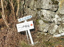 城の遺構としては、頂上近くに雑木林の中に曲輪と僅かに石垣の跡が残っていて、ここが城門跡と云われている。 |