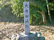 大井田城は、規模は小さな城だが比較的遺構がよく残っている城だ。主郭部の西側には土塁と空堀、南側にも高い土塁があり、北側には50センチ程度の高さの低土塁が残っている。 |