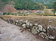 一乗谷城下は、上城戸と下城戸が設けられ、一乗谷全体が広い意味での一乗谷城だ。今でも両城戸とも土塁が残り、特に下城戸は空堀を伴い、虎口部分には巨石を積み上げた石垣が今も残っている。