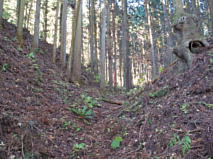 一段高く物見台と土塁を伴う本丸を中心にして尾根上に二の丸・中の城、駐車場の東側にある出城「天狗の丸」、平沢の集落(この集落にかつては根小屋が築かれていたのではないだろうか?と一人思う)を挟んで北東部の丘陵上に支城柳沢城を配した縄張りで、かつ尾根の両サイドの斜面も幾段にも策平した段曲輪が並ぶ、大規模な山城だ。 城跡は、本丸を中心に公園化されているが、本丸以外の曲輪は、雑木の覆われているが、本丸から中の城一帯にには土塁や空堀・竪堀の遺構が良好な形で残され、この城の堅固さを肌身で感じることができる。 |