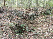 御津町役場から七曲がりの大手道を登ること、約40分程で出丸を経て二の丸に到着する。 臥龍山山頂に築かれた金川城は、山頂部の本丸・大手曲輪・二の丸が連郭式に配置され、本丸の北には鞍部を隔てて北の丸、本丸西の尾根筋には道林寺丸の曲輪群がある。 備前西部を支配した松田氏の本城だけに、その規模の大きさには驚かされ、本丸下の直径5m、深さ10m以上あろう『天守の井戸』に度肝を抜かれ、北の丸の二重堀切の見事さにただただ感激してしまった。 金川城には、天守の井戸以外にも二の丸杉の木井戸、北の丸白水の井戸があり、何れも遺構としては良好な保存状態であった。 また、破城された証であろうか、金川城のいたるところに崩された石垣の石材が散乱している。ほんの少しではあるが、道林寺丸の遊歩道沿いに石垣が残っていた。 |