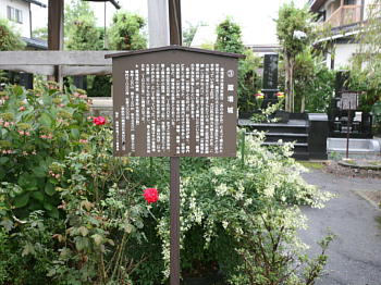 城の遺構は、町の随所に用水路と化した堀跡を残すのみ。尚、本丸のあった西称寺境内には城の案内板が建てられていた。 |
