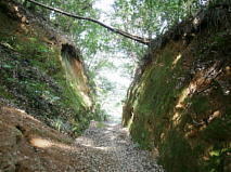 この「中の城」意外にテニスコートを隔てた龍泉寺のある所が「東の城」、グランドの南側が「南の城」、公園北側の住宅地となっている丘陵に消滅してしまった「北の城」が配置され、この4つの城を合わせて西階城として機能してたとか。 |