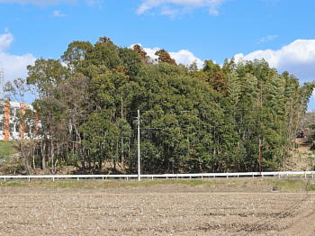 | 四保城は、小貝川左岸に沿って南北に伸びる台地の西端の段丘崖を利用して築かれている。民家敷地の西側から北側の竹藪中に土塁と横堀が残っているが、敷地内へ立ち入ることも出来なかった。ただ、西側の道路から見てもそこに土塁があることは直ぐ分かる。城の二の曲輪・三の曲輪とされる民家の北側は、現在特別養護老人ホームの敷地となっていた。 |