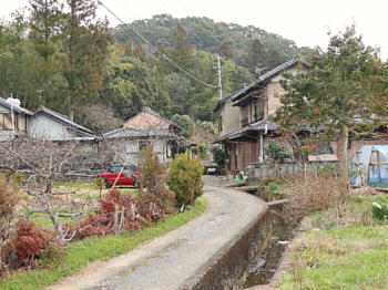 | 下野土居は、岡豊城の西麓、ちょうど岡豊城の出丸北西の谷筋に位置し、資料によれば西側谷筋より岡豊城への攻撃ルートを守る砦の役目を担っていた土居であったとか。現在では住宅地と畑地となっていて、土居の遺構は何も残っていない。 |