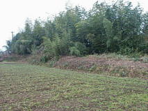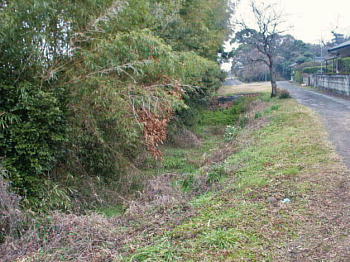 この碑から南に50m程歩くと畑に沿って土塁が残り、この土塁の外側には堀が良く残っている。また、城山神社の境内には城の遺構は見受けられなかったが、背後の田畑の西側に土塁が残っていた。 |