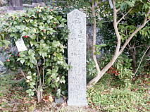 淀古城の遺構は何も残っていない。妙教寺の境内に小さな「淀城」の石碑が建てられていた。 |